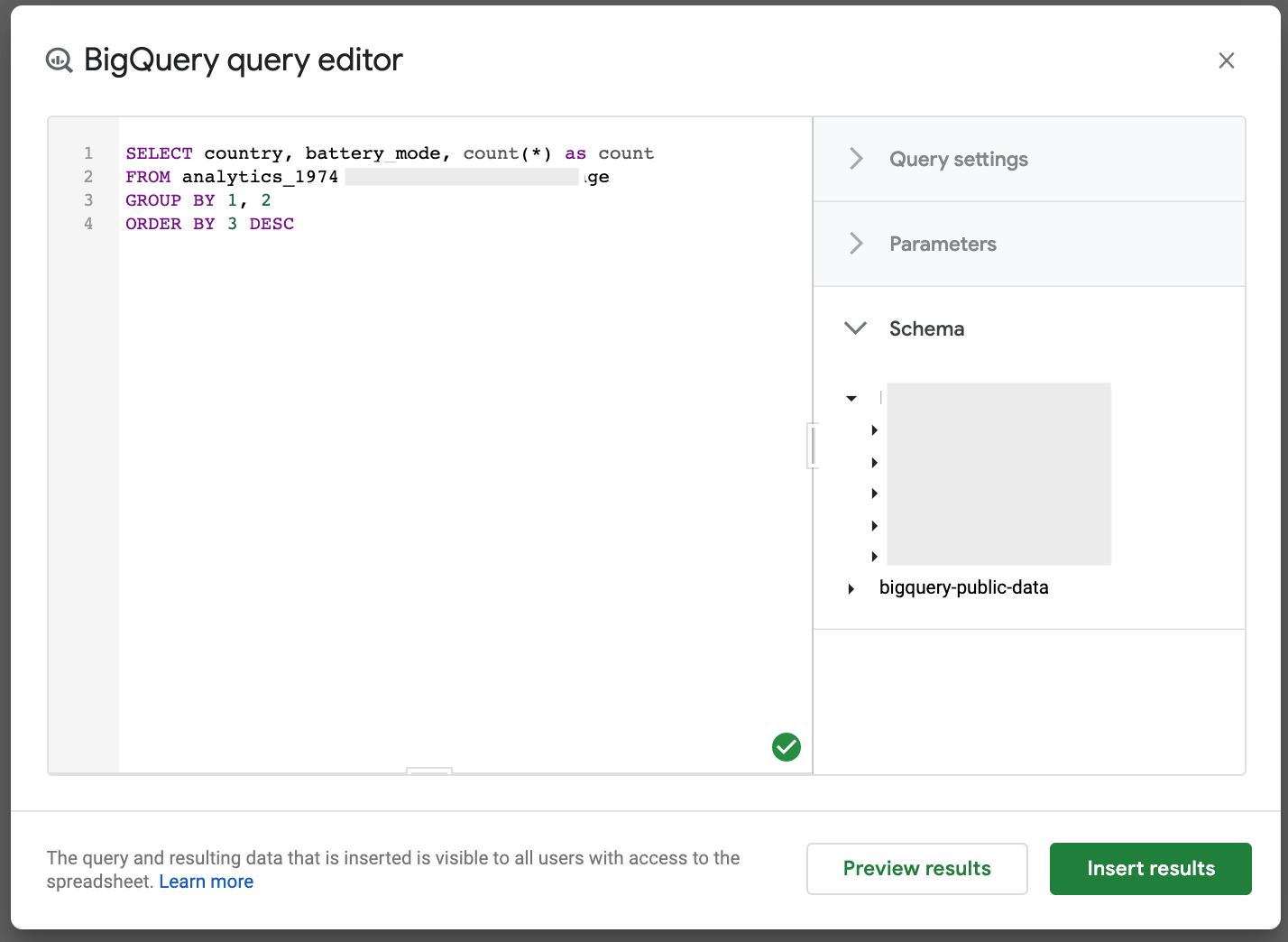 Data Studio: Connecting BigQuery and Google Sheets to help with hefty data analysis